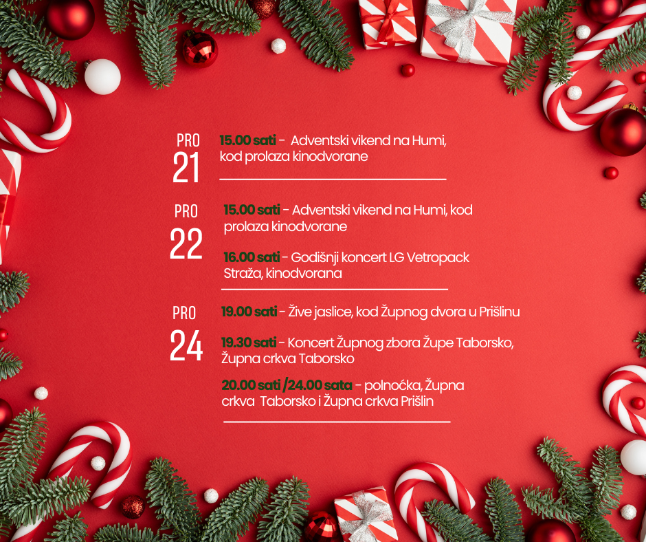 Kalendar Adventskih događanja - Advent u Humu na Sutli 2024.