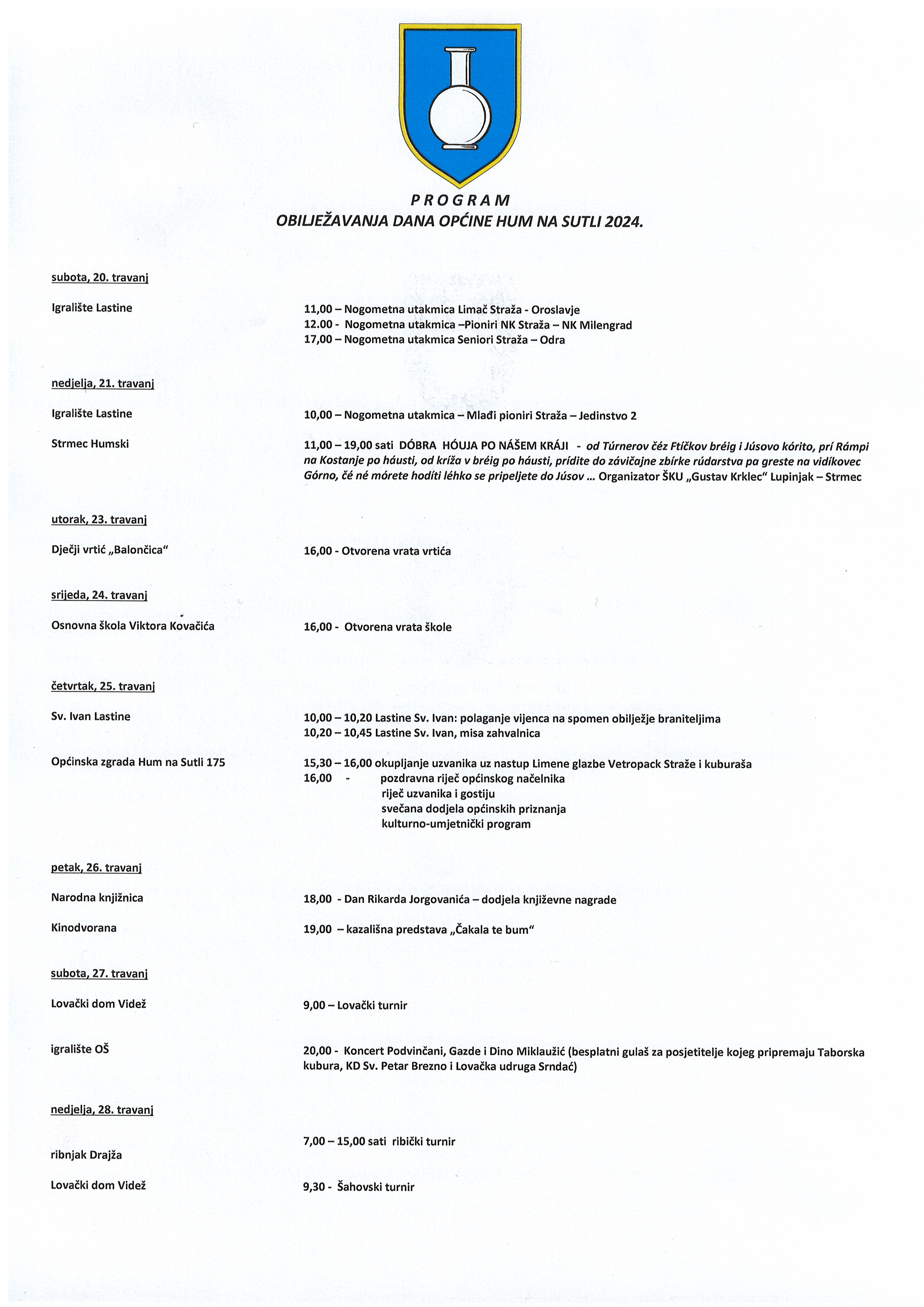 PROGRAM OBILJEŽAVANJA DANA OPĆINE HUM NA SUTLI 2024.