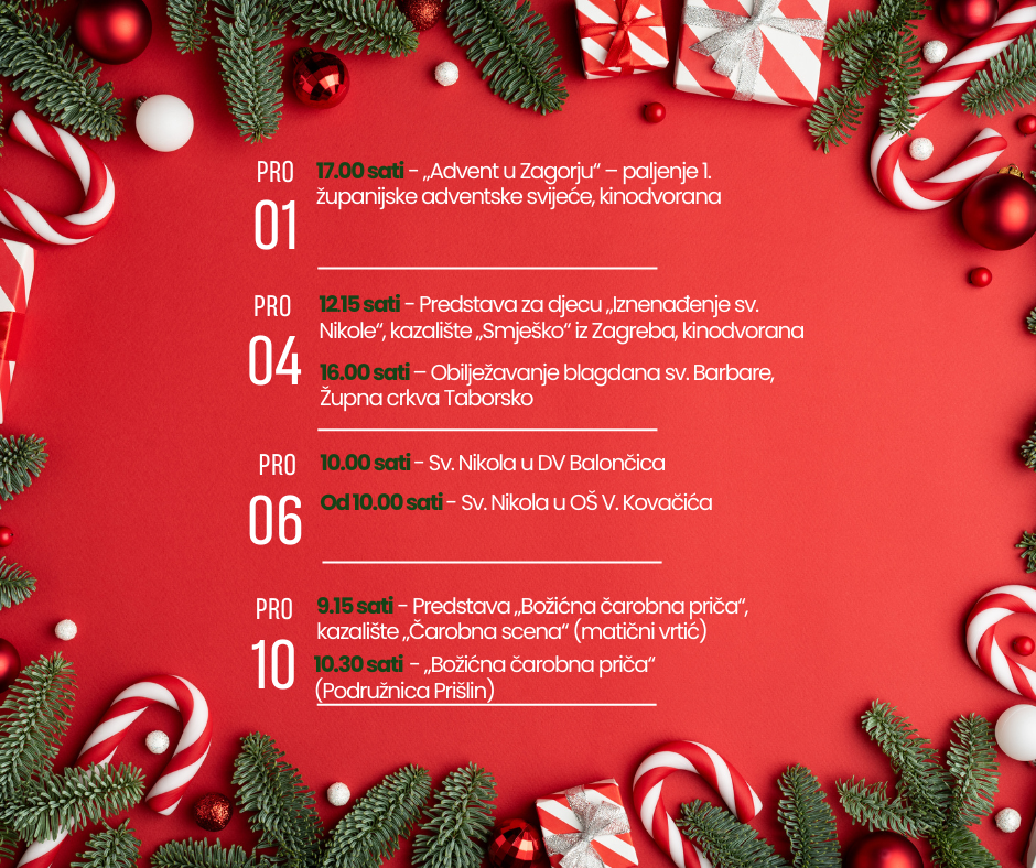 Kalendar Adventskih događanja - Advent u Humu na Sutli 2024.