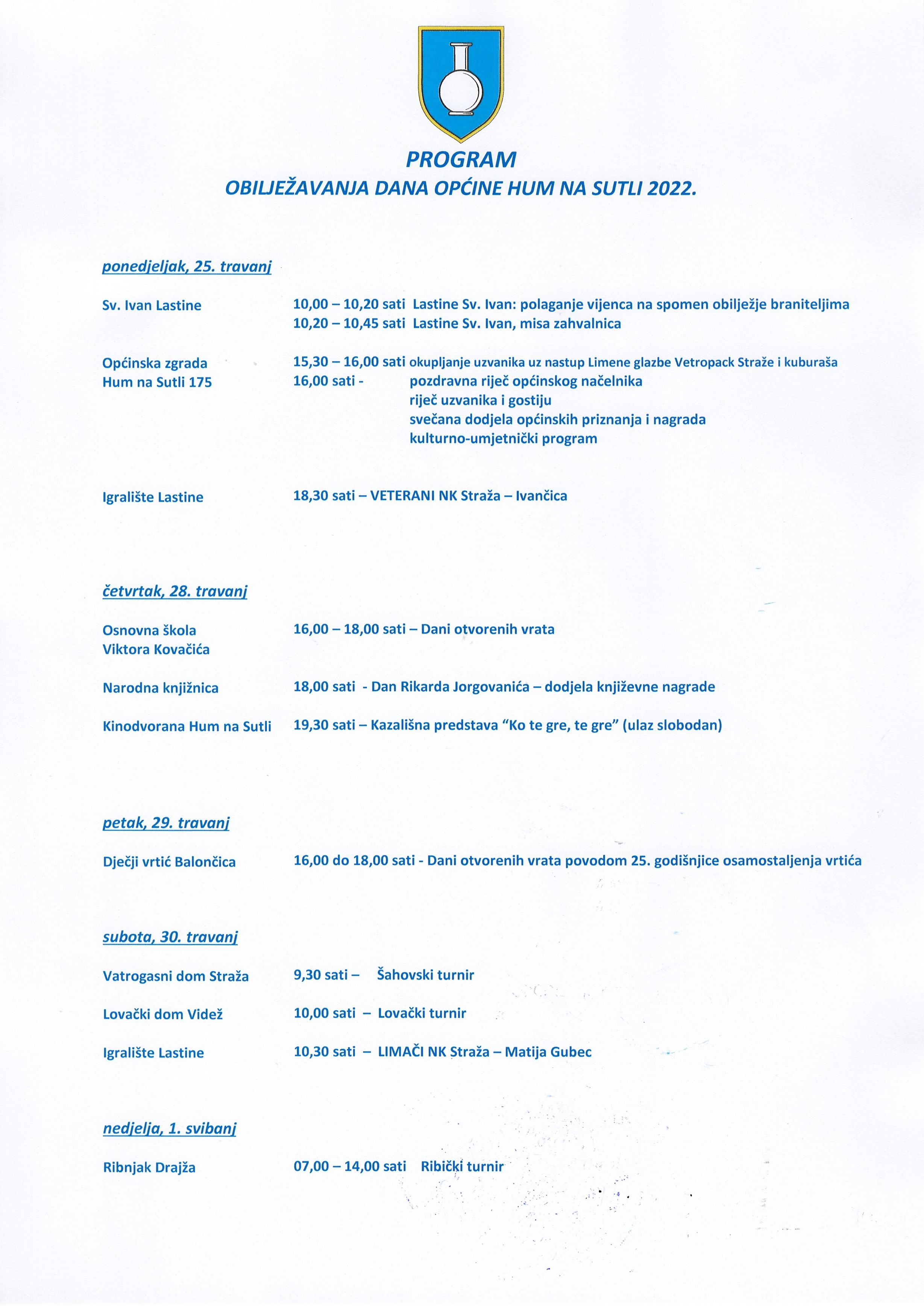 PPROGRAM OBILJEŽAVANJA DANA OPĆINE HUM NA SUTLI 2022.