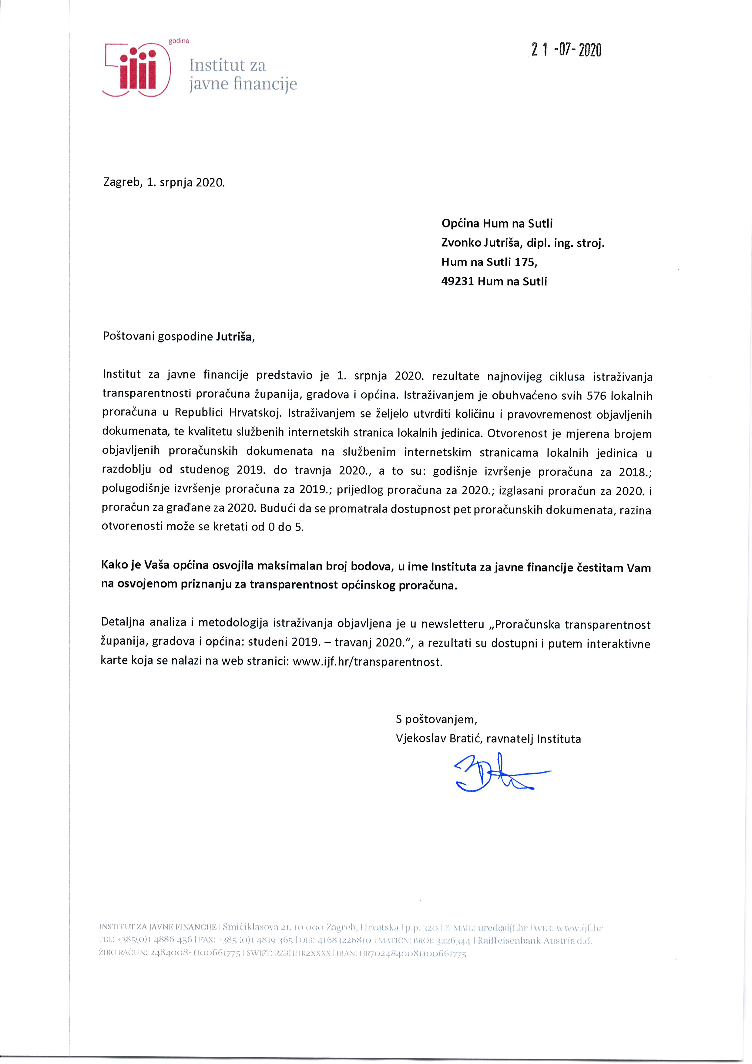 Institu za javne financije dodijelilo je Općini Hum na Sutli priznanje za transparentnost općinskog proračuna (studeni 2019. - travanj 2020.). Transparentnost je ocijenjena s maksimalnim brojem bodova - 5. jpg
