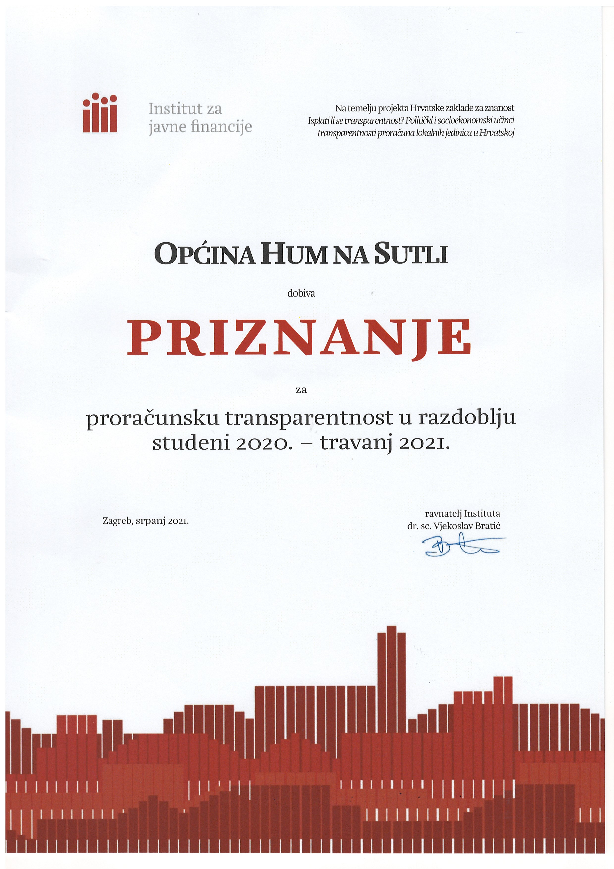 jpg Priznanje Općini Hum na Sutli Instituta za javne finanacije za proračunsku transparentnost u razdoblju studeni 2020. - travanj 2021. pdf Institut za javne financije